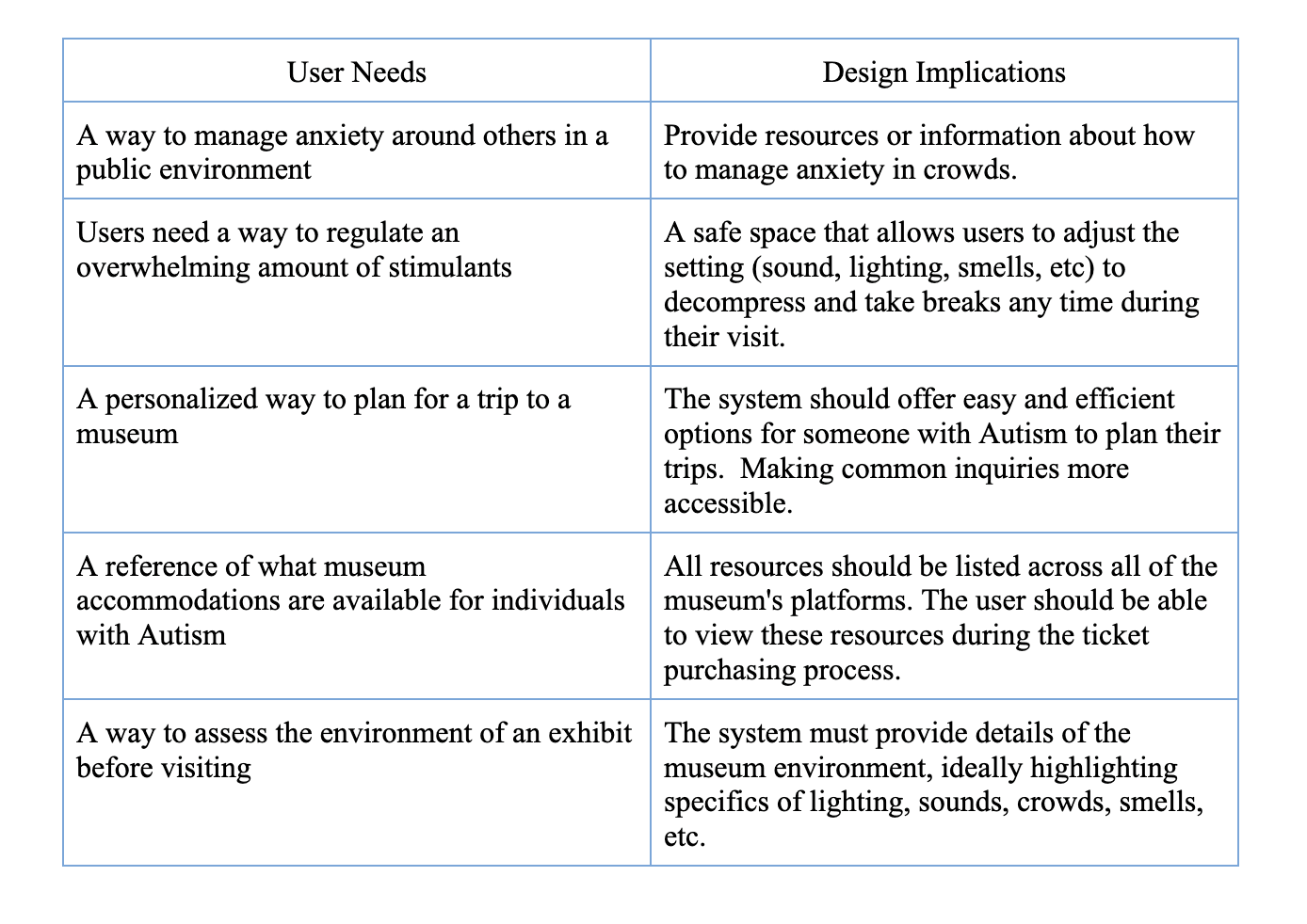 Research identified pre-visit uncertainty and sensory unpredictability as key barriers influencing museum engagement for adults with Autism. These insights shifted the solution focus toward pre-visit preparation, information transparency, and navigation support. The resulting design demonstrates how museums could improve accessibility by supporting preparedness without requiring significant physical changes.